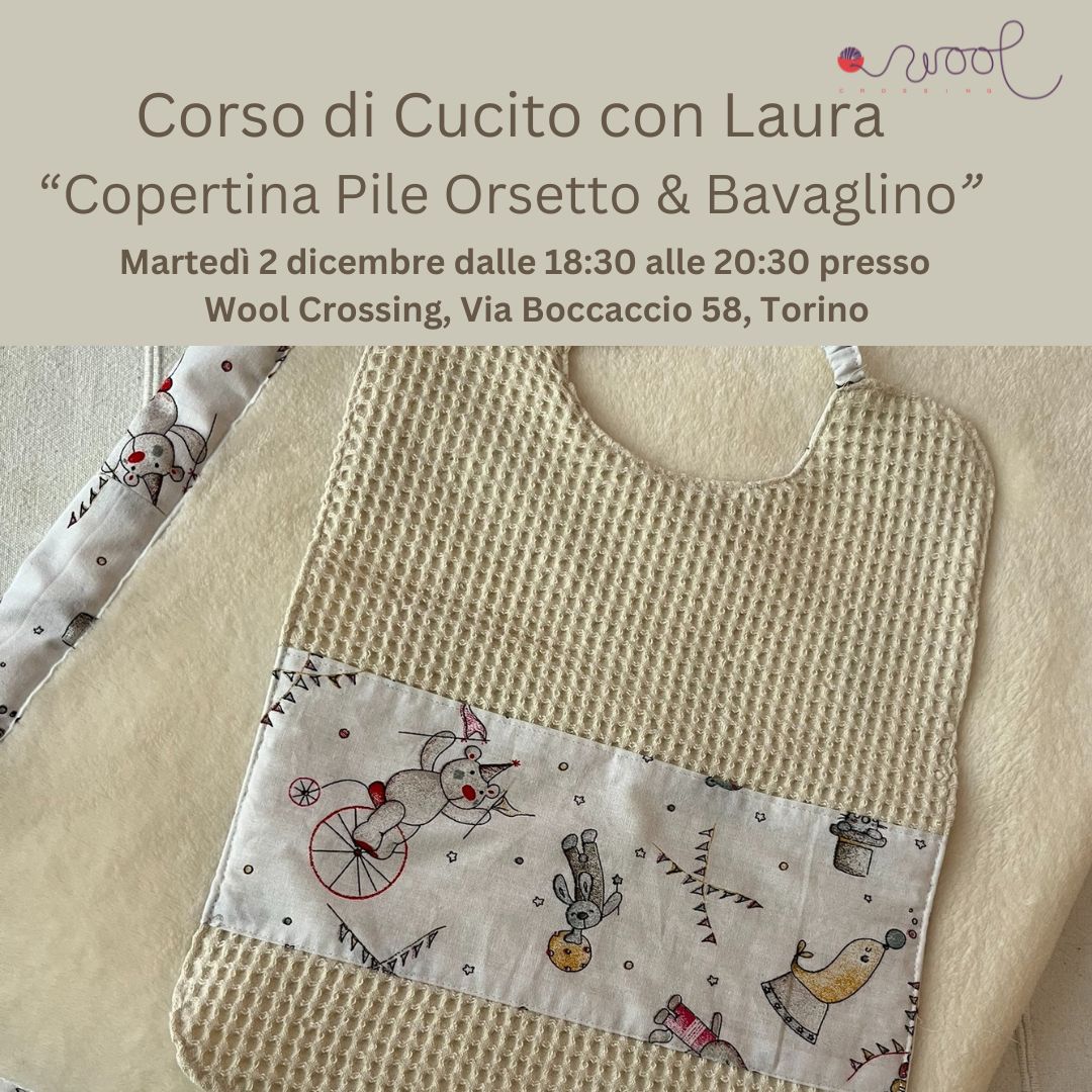 Insieme a @burla.lab cuciremo insieme una copertina in pile orsetto imparando ad applicare il bordo in stoffa e in pendant cuciremo anche un bavaglino in spugna piquet con elastico e fodera in stoffa.