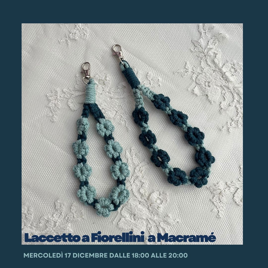 Gli intrecci di fili sono la mia passione in tutte le loro forme! In questo caso si tratta di macramè, un susseguirsi di nodi che formano dei disegni di fiorellini che con la guida di Antonella riuscirete a realizzare in 2 ore un bellissimo laccetto per il telefono e avrete a disposizione un KIT completo di tutto l’occorrente.